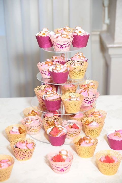 Continue reading →Each cupcake had a different colored flower to explain the flavor: The ones with an orange center are carrot cake The red ones are strawberry cake The pink ones are chocolate, And the gold flowers are vanilla