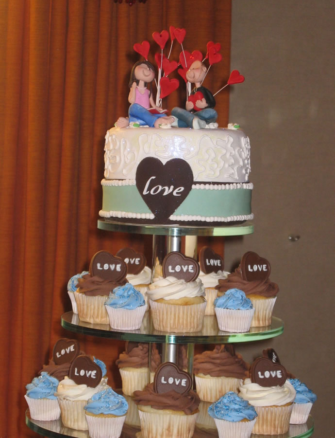 rehearsal_cupcake_tower_clay_toppers Published June 8, 2016 at 690 × 900 in Rehearsal Dinner Cupcake Tower with Clay Figurines